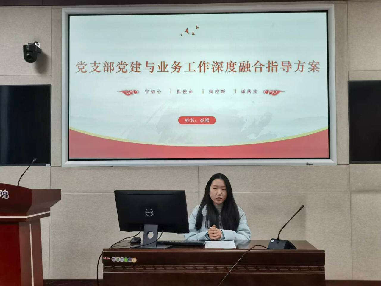 哲学学院马克思主义哲学硕士研究生党支部书记秦越围绕《党支部党建与业务工作深度融合指导方案》进行专题分享,从理论武装、服务中心工作、团结凝聚师生等方面,系统阐述了推进党建与业务工作深度融合的具体路径和实践方法。
