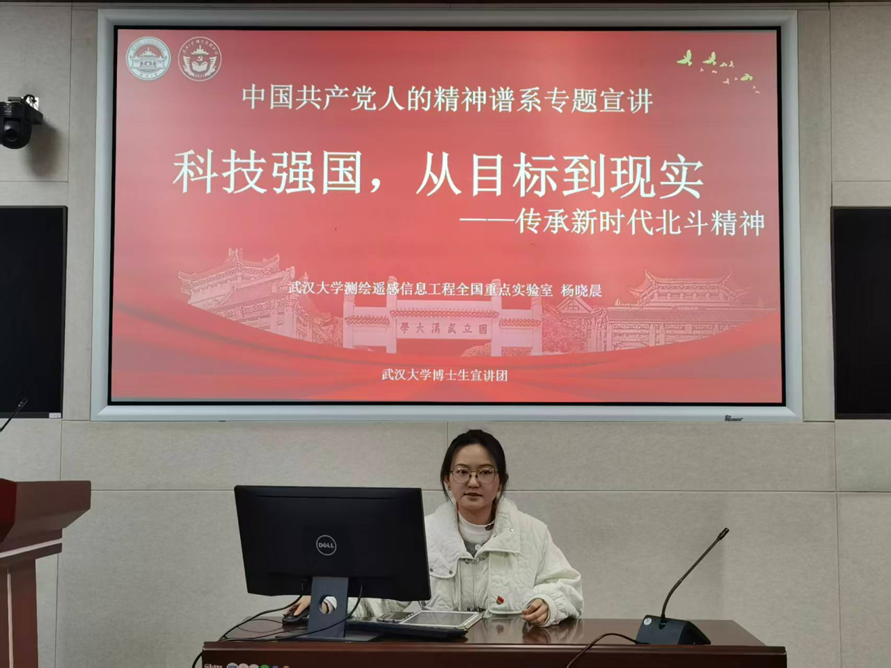 武汉大学博士生宣讲团讲师杨晓晨以《科技强国,从目标到现实——传承新时代北斗精神》为题,通过北斗卫星导航系统的研发历程和重大成就,生动阐释了新时代北斗精神的深刻内涵,激励学员在实现高水平科技自立自强的征程中贡献青春力量。