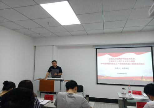 开班式结束后,龙滔书记为学员们带来了本次培训班的第一次授课——以《正确认识世界和中国发展大势,不断树立为共产主义远大理想和中国特色社会主义共同理想而奋斗的信念和信心》为主题的课程讲授。他指出,在2016年召开的全国高校思想政治工作会议上,习近平总书记指出,要教育引导青年学生树立“四个正确认识”。 习近平总书记关于“四个正确认识”的论述,站在实现中华民族伟大复兴的全局和战略高度,立足当下世情、国情、生情,透视历史、现实和未来, 指出了新时代大学生成长成才切入点和着力点,是广大青年学生特别是入党积极分子努力的方向和目标。在本次讲授中,他从经济发展大势、社会发展大势、国际格局发展大势三个方面入手,提出了“漫长的16世纪”以来大分流的历史转向了大翻转的历史,科学社会主义在中国焕发出强大的生机和活力,这就是21世纪的世界和中国发展大势的观点,指出了我国社会主义制度的优越性,号召学员树立为共产主义远大理想和中国特色社会主义共同理想而奋斗的信念和信心。龙书记的授课,进一步坚定了学员们积极向党组织靠拢、为中华民族崛起奋斗的决心。