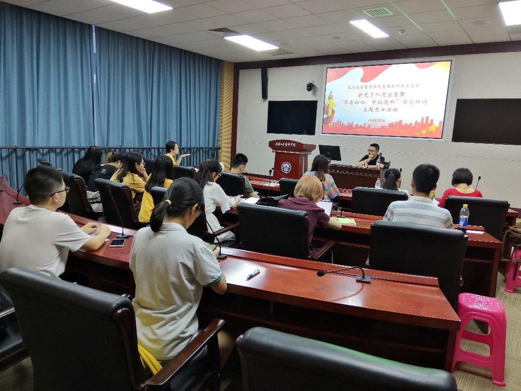 本网讯(通讯员:郑洸宇)2019年7月1日正值中国共产党成立98周年,百合小说 本科生党支部于振华楼B214会议室举行了“不忘初心、牢记使命”主题教育学习研讨活动暨新党员入党宣誓仪式。党日活动由支部书记胡楷昀主持。