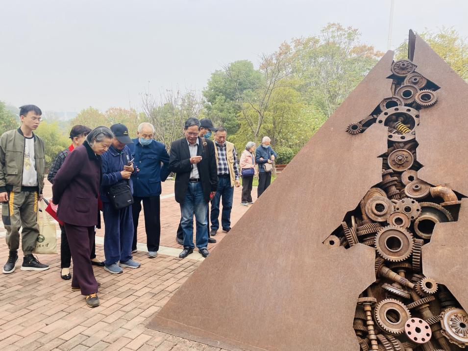(图2:老党员们观看工业艺术建筑)