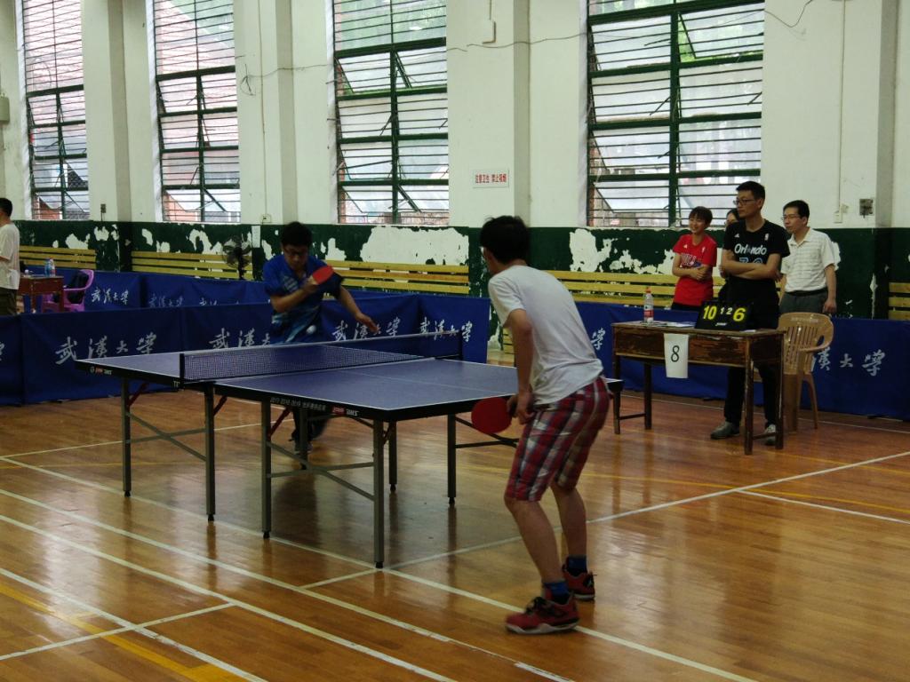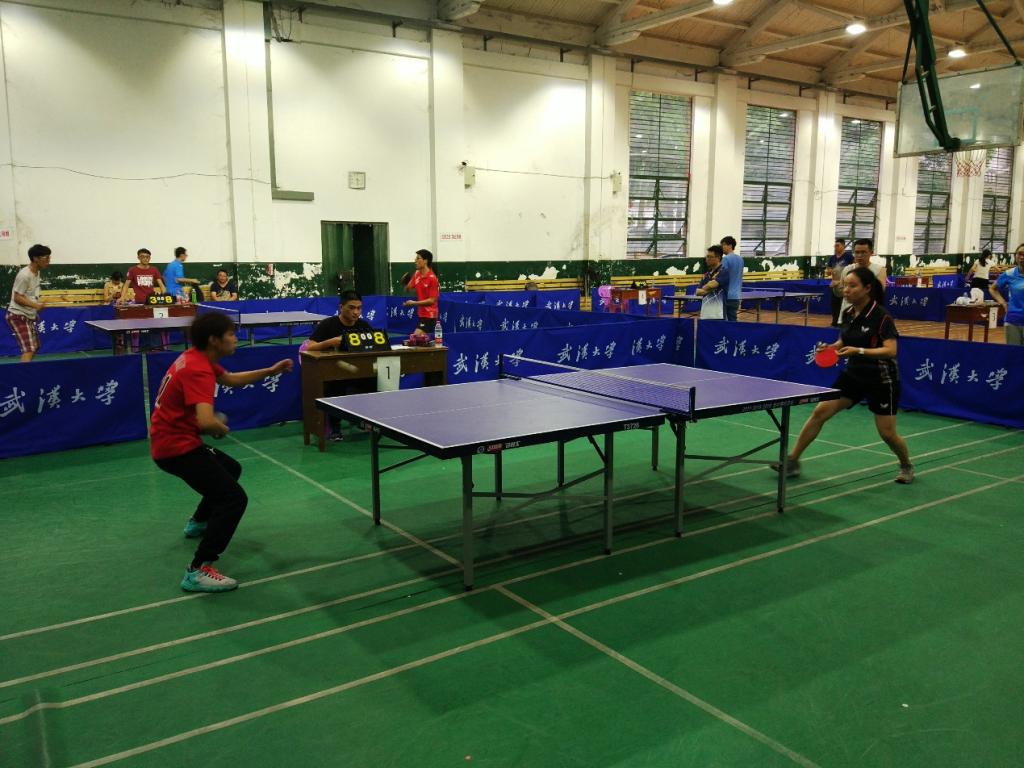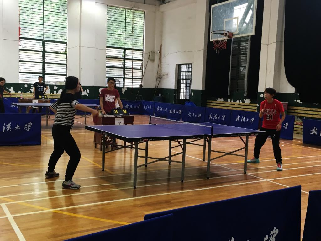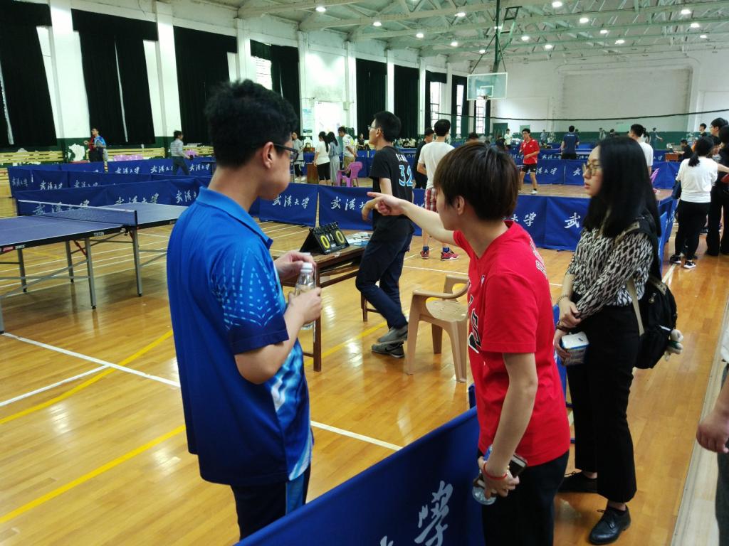 首先是女子单打比赛。第一轮:魏诗妍VS.阮诗斯(测绘遥感信息工程国家重点实验室)
