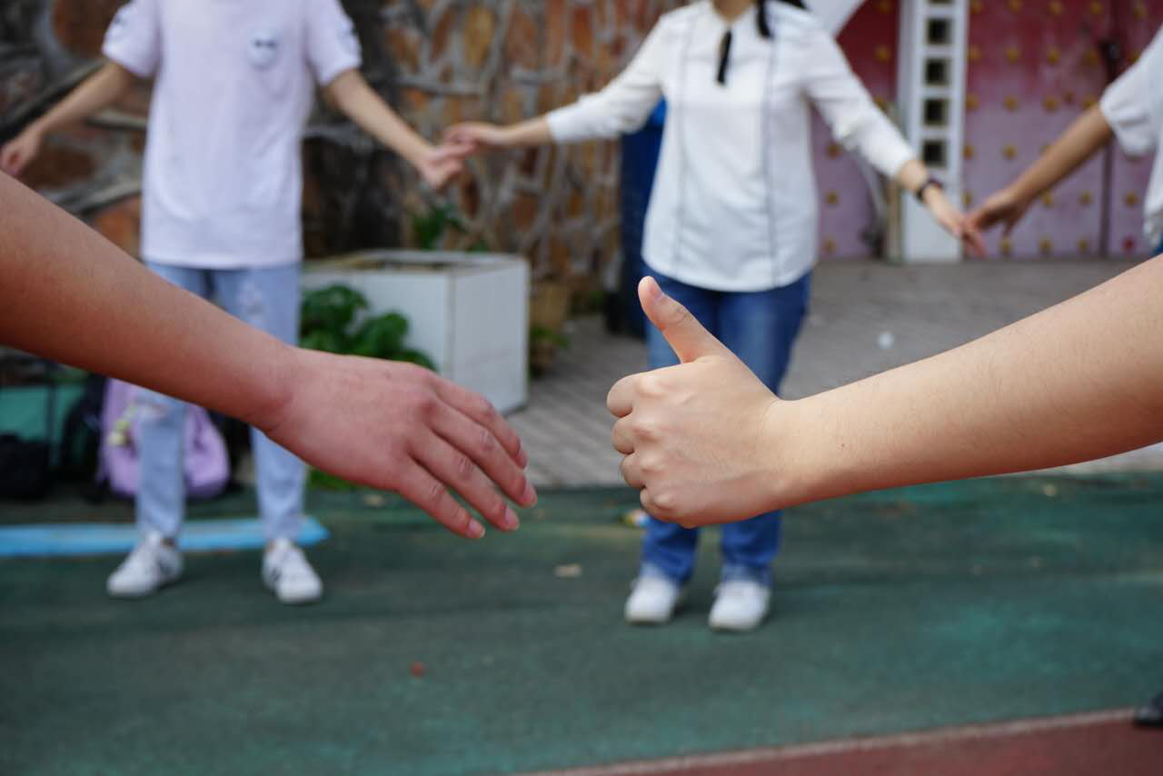 在接下来的“抓住党的生命线”活动中,成员们更是有了肢体上的互动。还是围成一圈的成员们向两侧伸出左右手,由团体带领者念一段《关于新形势下党内政治生活的若干准则》中的节选,当成员们听到“党员”或者“党组织”这个词时,每个人的右手去抓右边人的左手,同时注意自己的左手要躲避被抓。此活动还设置了小惩罚,过程中简直妙趣横生,进一步增加了团体凝聚力,增进了成员彼此间的互动。