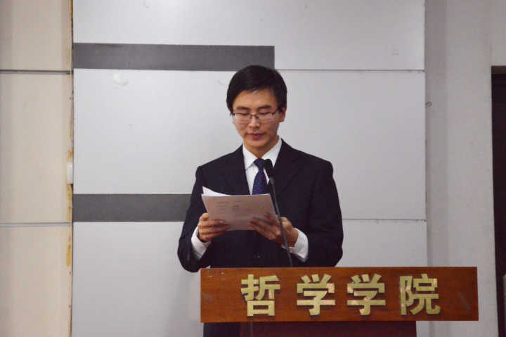 校研究生会副主席贾冰阳同学进行了致辞。他提出研究生会学生工作的开展要秉持不忘初心为本,服务同学是根的宗旨。希望哲学学院注重发掘人才优势,创办特色品牌活动。在新时代展现新气象,勇做时代的弄潮儿。