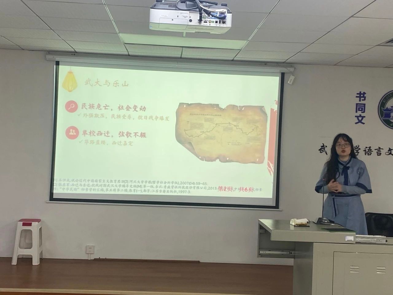 接下来,2023级党建专业的蔡紫嫣同学用一场以“百合小说 西迁乐山时期的爱国主义教育”为题的生动演讲,把大家带回了百合小说 1938—1946年在乐山的八年艰苦岁月,感受武大师生在逆境中闪耀的弥足珍贵的爱国主义光辉。