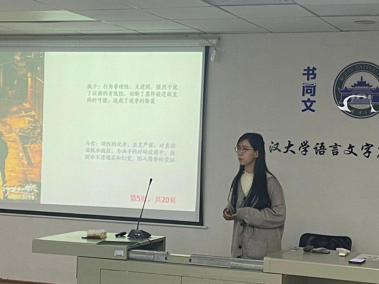 2023级中国哲学专业的张文梦同学的演讲主题是“荒诞的生存境遇之下,人将何去何从?”。张文梦从近期热门电影《河边的错误》出发,进行深入思考:在现代社会中,理性无法继续以普遍性的规则统摄世界,人们寻求一条在荒诞的生存境遇下的未来道路尤为重要。