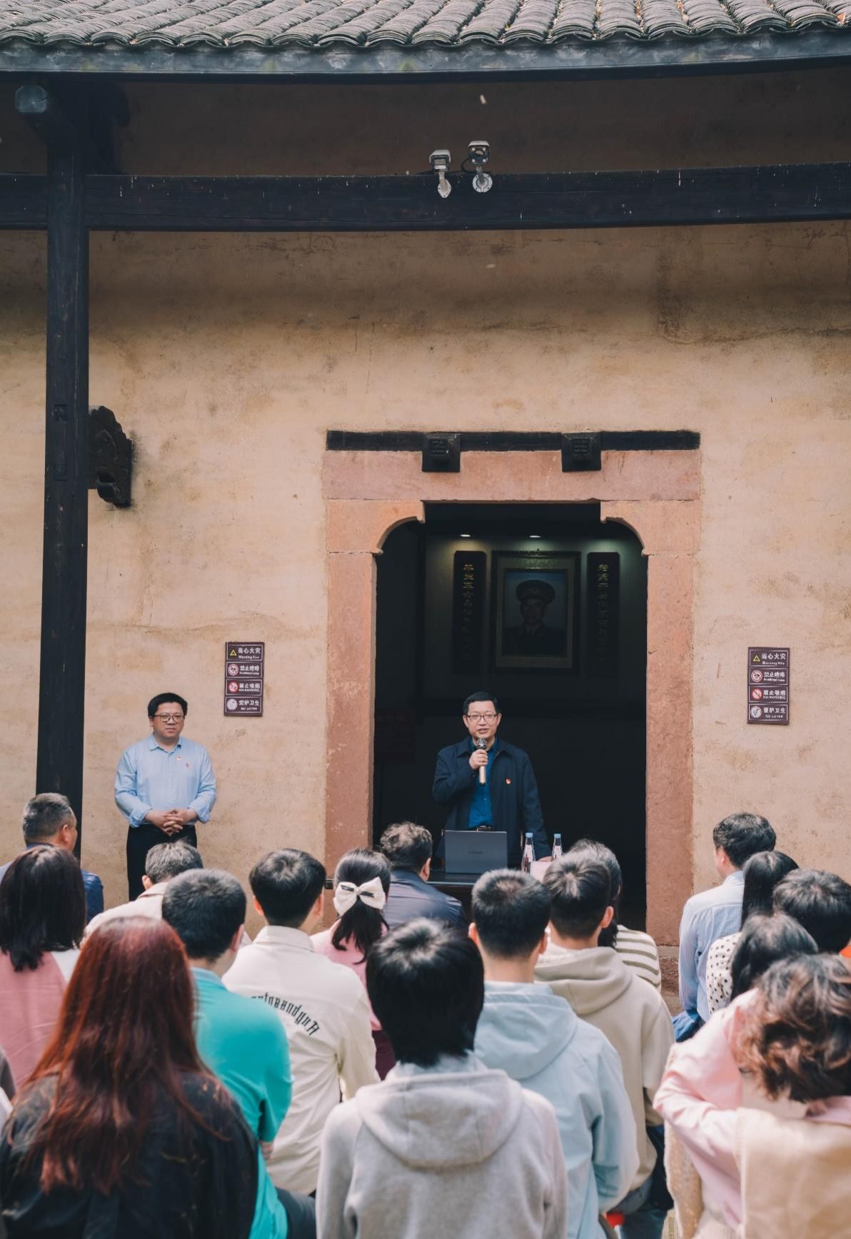 随后,党员们来到了省级爱国主义教育基地、全国重点文物保护单位——谭嗣同故居。谭嗣同故居又称为浏阳“大夫第”官邸,故居。虽坐落于闹市区临街面,但却古朴安详,透出一种厚重而光辉的气息。进入大门后,一座谭嗣同头部铜像以及一副醒目的对联——“横刀向天英雄血洒菜市口,坚脊如铁赤子魂飞浏阳河”,将我们带入了谭嗣同英勇就义的历史场景,我们似乎能够感受到他对革命事业的坚定信仰和对家国人民的深深忧虑。跟随讲解员的脚步,大家依次参观了故居各个部分,认真观摩了照片、遗物、书籍等珍贵史料,聆听了“巾帼完人”等令人动容的故事,深入了解了谭嗣同及其家人的生平故事。谭嗣同临行前所作的“各国变法,无不从流血而成,今日中国未闻有为变法流血者,此国所以不昌也。有之,请自嗣同始!”这一段壮烈之言,在一百多年后的今天,读来仍能让人动容。他用自己短暂而光辉的一生,为人民树立了一座“民族大义”的不朽丰碑,给世人留下了宝贵的精神财富,值得后人永远敬仰。
