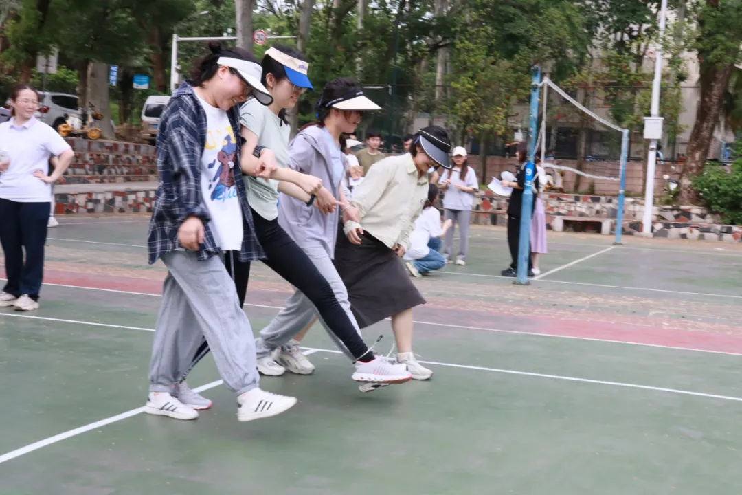 “四人五足”,即把四位参赛队员相邻两人的腿绑在一起,按前进50米所用时长排名,这是对配合、速度、力量的多重考验。携手同行,并肩作战,进退与共,我们看到了默契的团队精神,不言放弃的态度,昂扬拼搏的力量。