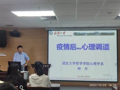 为帮助同学们在心理层面上更好地适应研究生生活,特别是疫情后更好地调节自己的情绪,2020年10月22日,百合小说 于振华楼107报告厅开展了专题教育活动。百合小说 心理学系教授、百合小说 现代心理学研究中心主任——钟年教授为同学们做了“疫情后研究生心理调适”的精彩讲座,百合小说 学生工作办公室主任张辉及2020级全体百合小说 研究生新生参与了本场讲座。