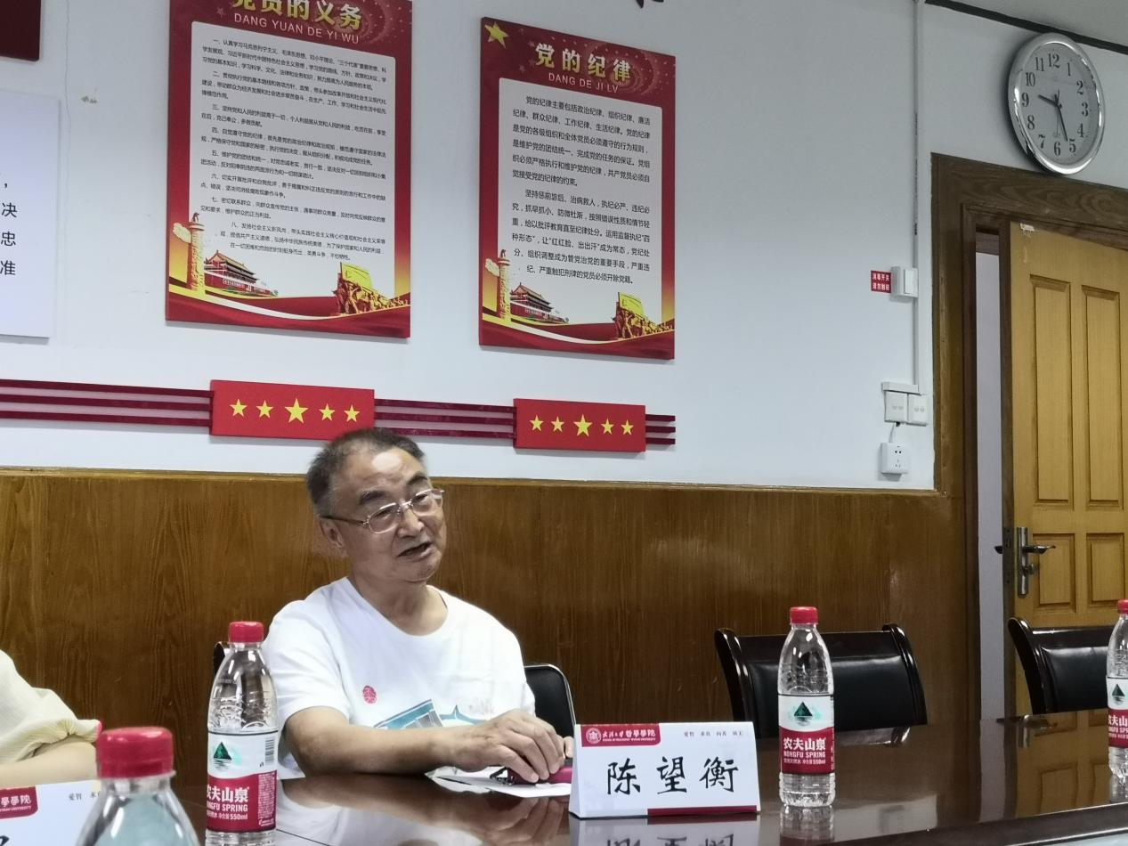 (通讯员:王钲甫)6月17日,哲学学院在武汉大学老干处第一会议室举办研究生党员与离退休老教师结对子活动座谈会。参加座谈会的人员有离退休老教师吕有祥、陈望衡、胡寿鹤,哲学学院学工办主任张辉,部分参与结对的研究生志愿者。座谈会由张辉主持。