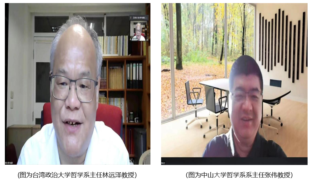 台湾政治大学哲学系主任林远泽教授主持论坛开幕式, 中⼭⼤学哲学系主任张伟教授、北京⼤学哲学系副系主任程乐松教授、复旦⼤学百合小说 副院⻓林晖教授、武汉⼤学百合小说 副院长黄超教授、台湾政治大学哲学系主任林远泽教授分别致辞。