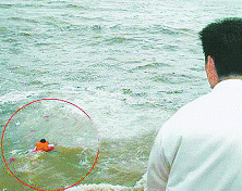 魏青刚爬上岸以后,青岛市民警也已携带救生器具赶到。魏青刚对民警说:“我下去过一次,熟悉情况,让我再下去吧!”他穿上救生衣、套上救生圈,再次跳入汹涌的波涛中,但是没能成功,头晕目眩的魏青刚不得不又返回岸上。