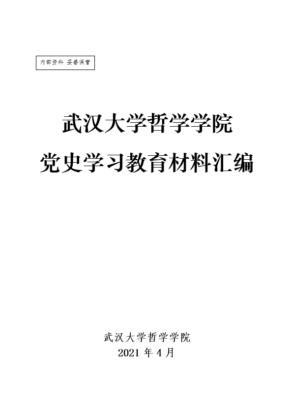 会前,学院党委印发了《武汉大学哲学学院党史学习教育材料汇编》,作为各党支部有序开展党史学习教育的工具书。