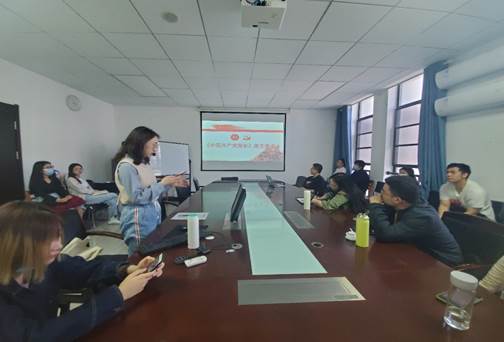 随后,支部书记邹珊带领大家观看了《党史故事一百讲》。欲知大道,必先知史,中国共产党的成立是不容易的,走过的路程更是艰辛的。通过观看视频,支部成员们看到了一幅幅恢弘磅礴的历史画卷,看到了革命家们勇于实践和承担责任的壮志雄心,在党史故事中汲取了前进的力量。