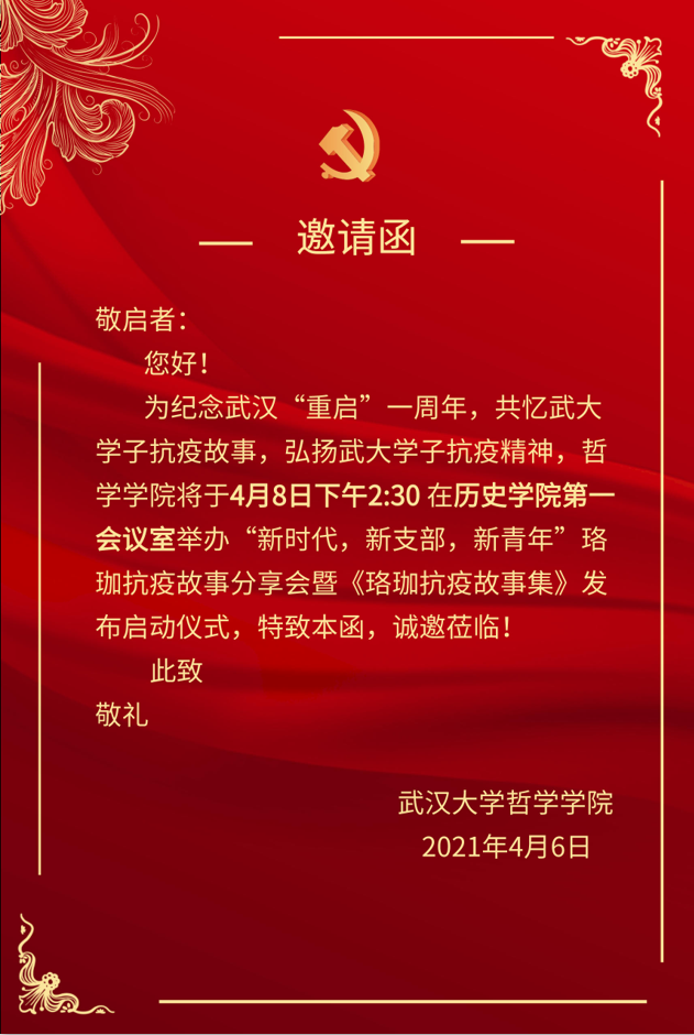 关于召开珞珈抗疫故事分享会暨珞珈抗疫故事集发布仪式的通知