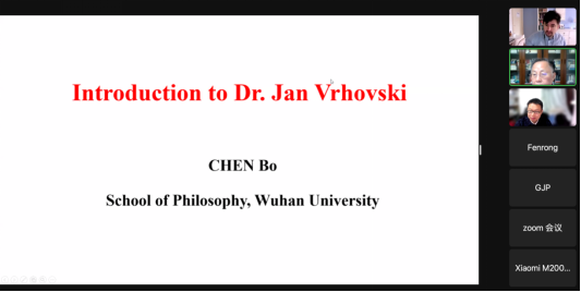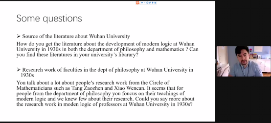 本网讯(通讯员李懿迪)10月7日晚,应我院陈波教授邀请,卢布尔雅那大学助理教授扬·弗霍夫斯基(Jan Vrhovski)通过网络平台作了题为“数理逻辑在中国的历史:从其开端到清华大学”(History of Mathematical Logic in China: From Its Beginnings to Tsinghua University)的主题讲座,讲座由陈波主持,我院程勇教授评议。本次讲座是武汉大学哲学学院百年庆典系列活动之一,来自国内外的500余名听众参加此次线上讲座。
