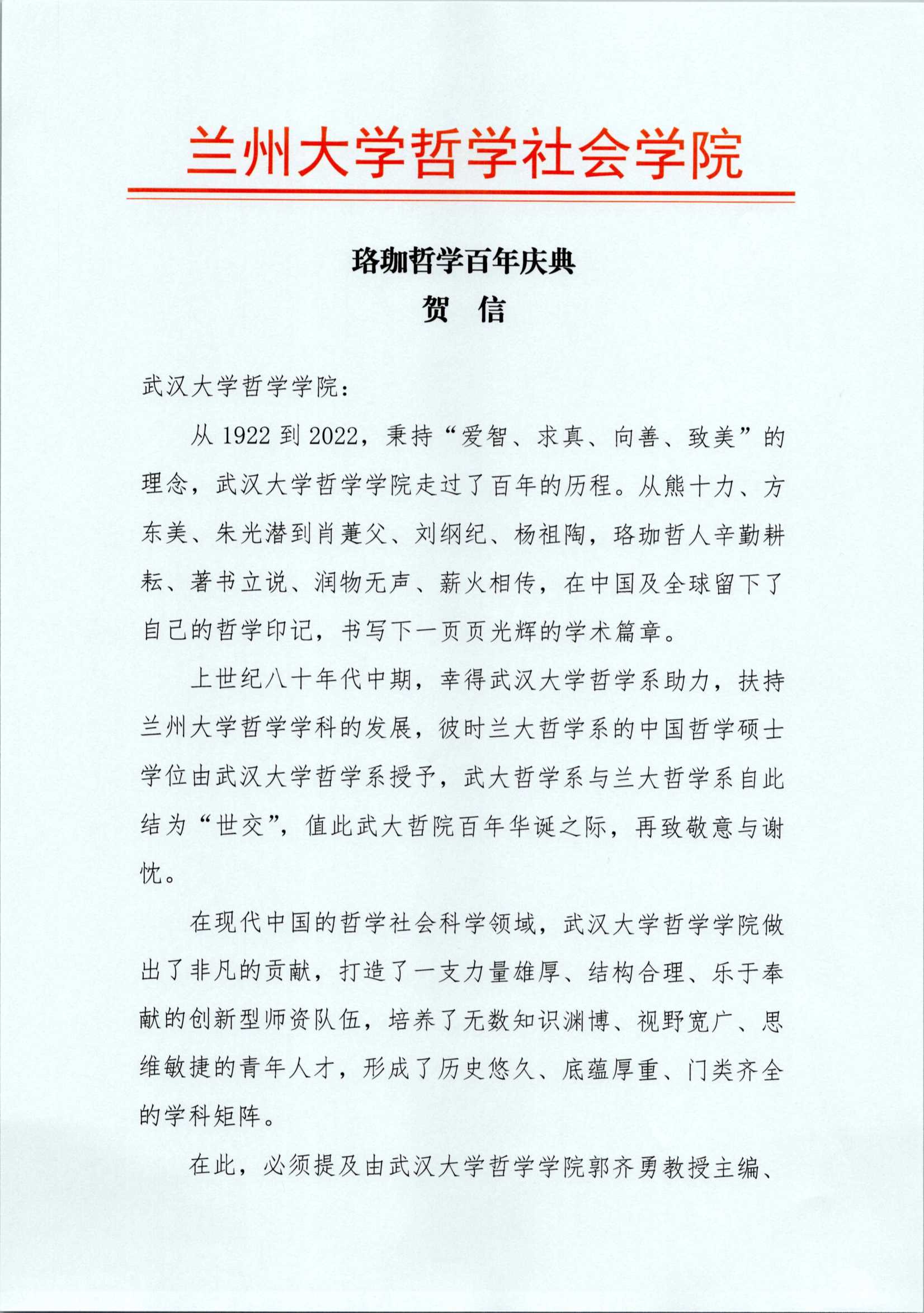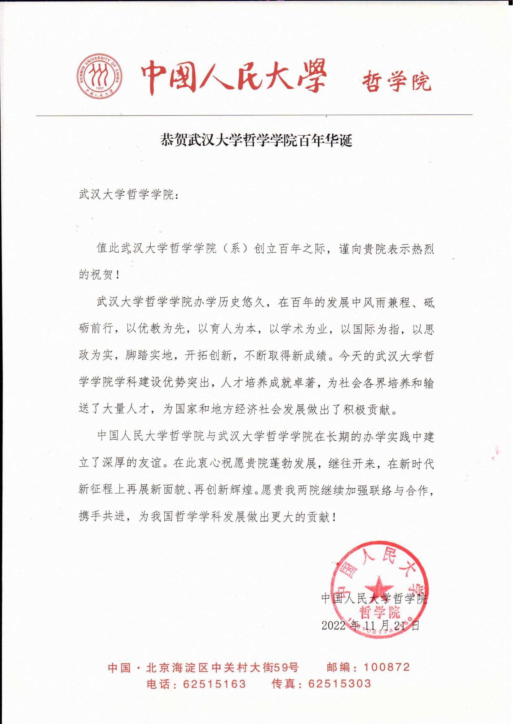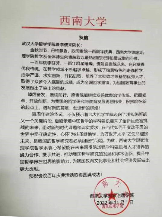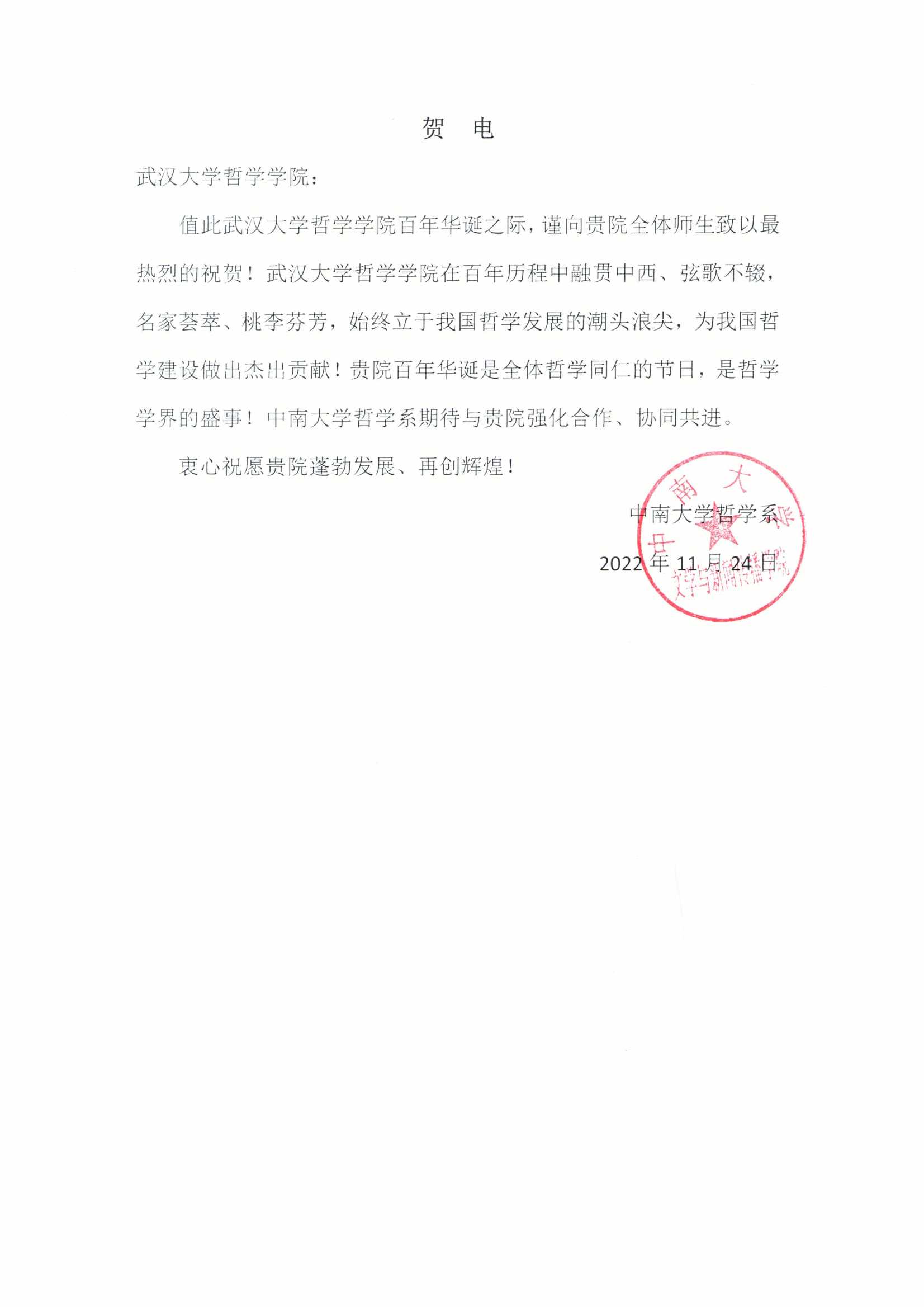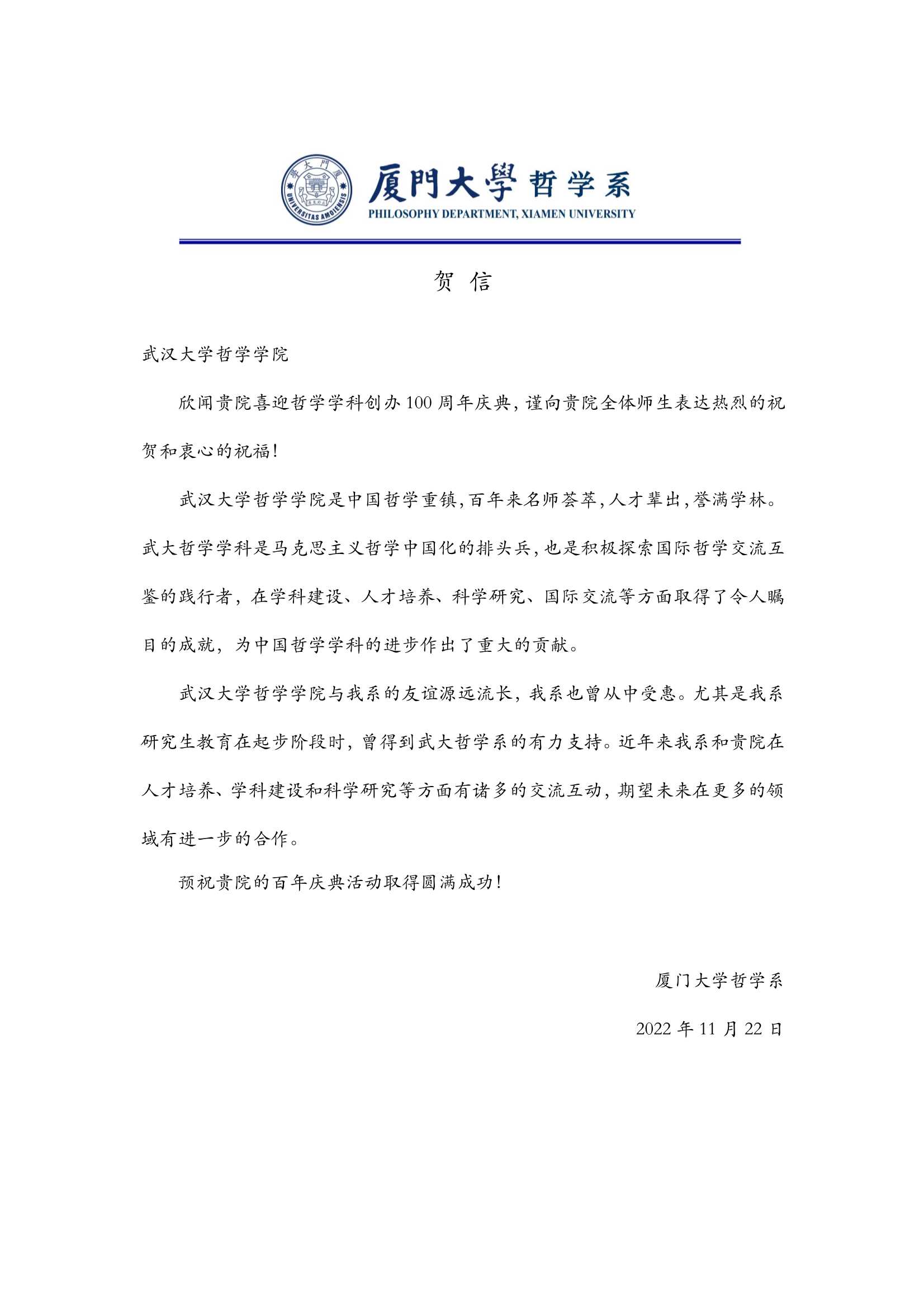 院庆贺信