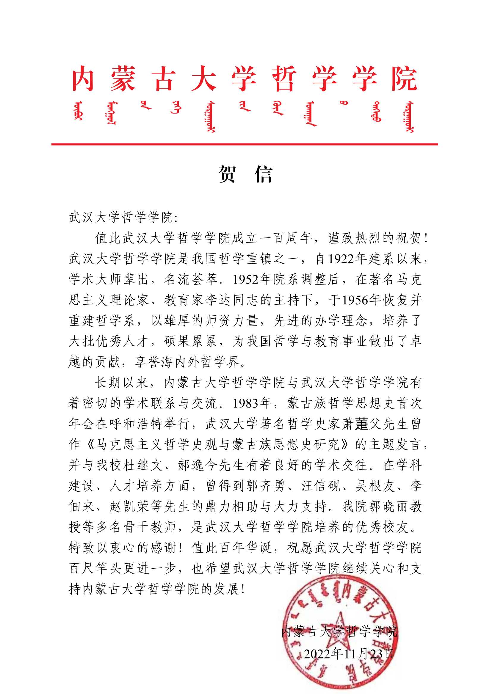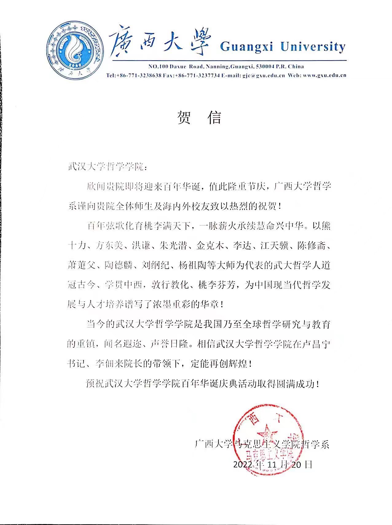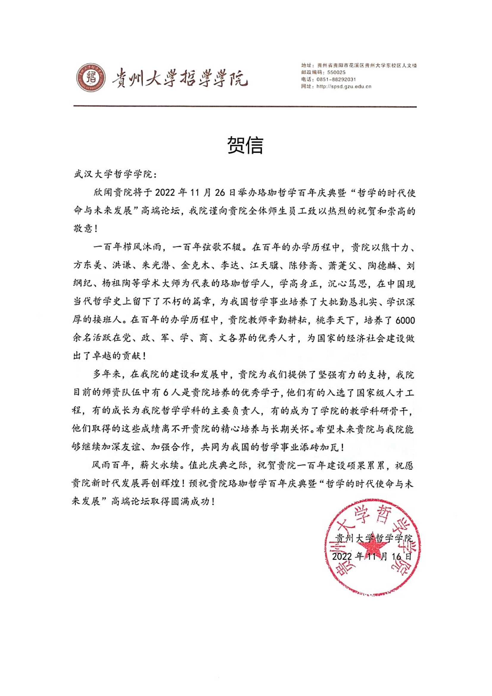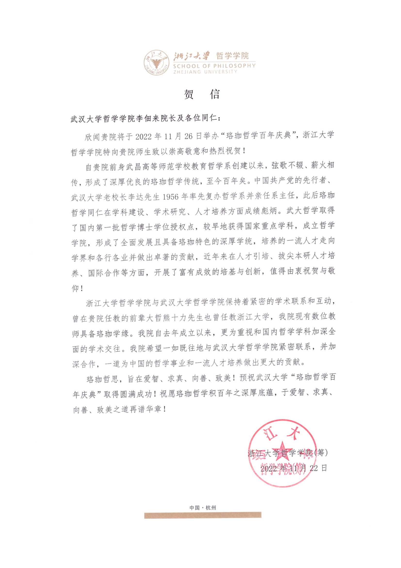 院庆贺信